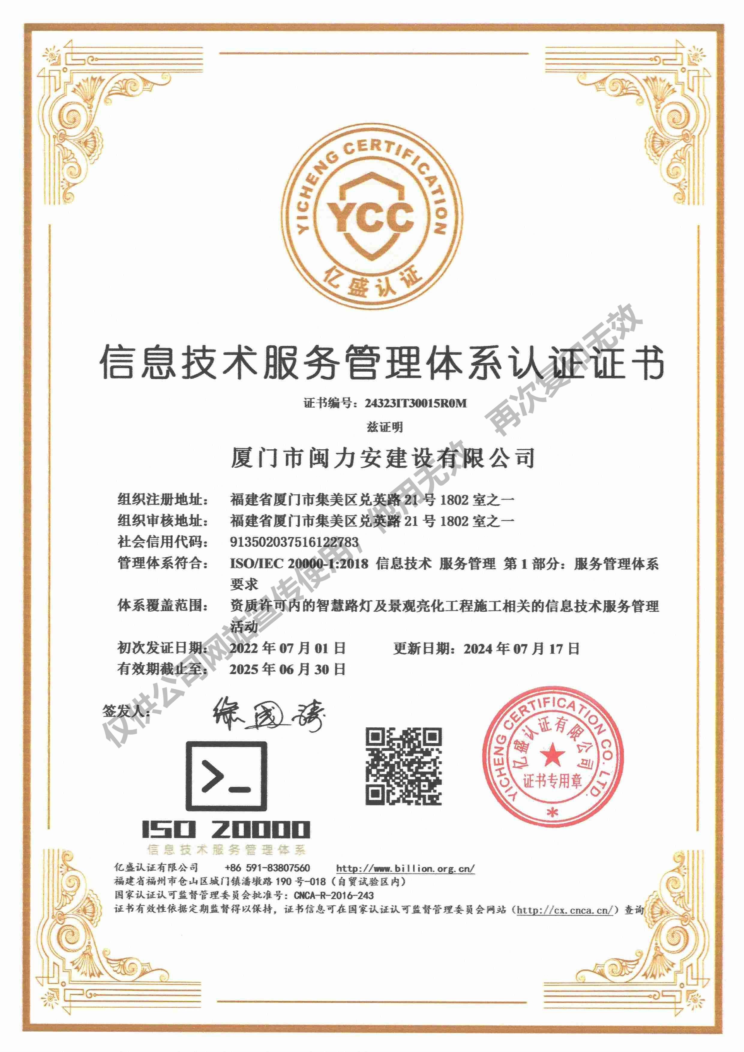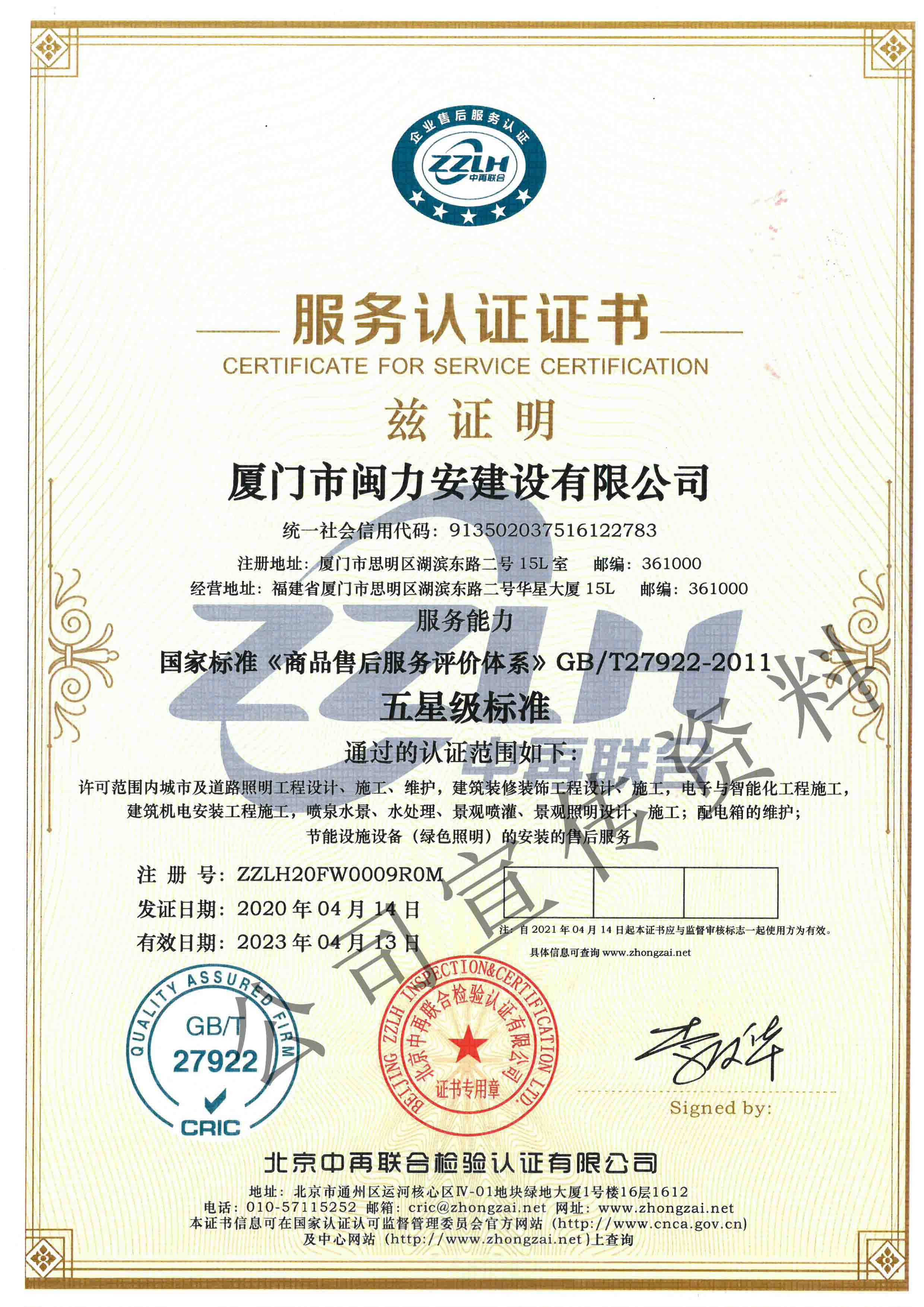 廈門市閩力安建設(shè)有限公司成立于2003年,公司取得市政公用工程施工總承包貳級、建筑裝修裝飾工程專業(yè)承包壹級、城市及道路照明工程專業(yè)承包壹級、電子與智能化工程專業(yè)承包貳級、消防設(shè)施工程專業(yè)承包貳級、電力工程施工總承包叁級、建筑機(jī)電安裝工程專業(yè)承包叁級、輸變電工程專業(yè)承包叁級、環(huán)保工程專業(yè)承包叁級、照明工程設(shè)計(jì)專項(xiàng)甲級、建筑裝飾工程設(shè)計(jì)乙級、施工勞務(wù)等資質(zhì)的綜合型企業(yè),公司于2013年通過了ISO9001質(zhì)量體系認(rèn)證,ISO14001環(huán)境管理體系認(rèn)證,OHSAS18001職業(yè)健康安全管理體系認(rèn)證。